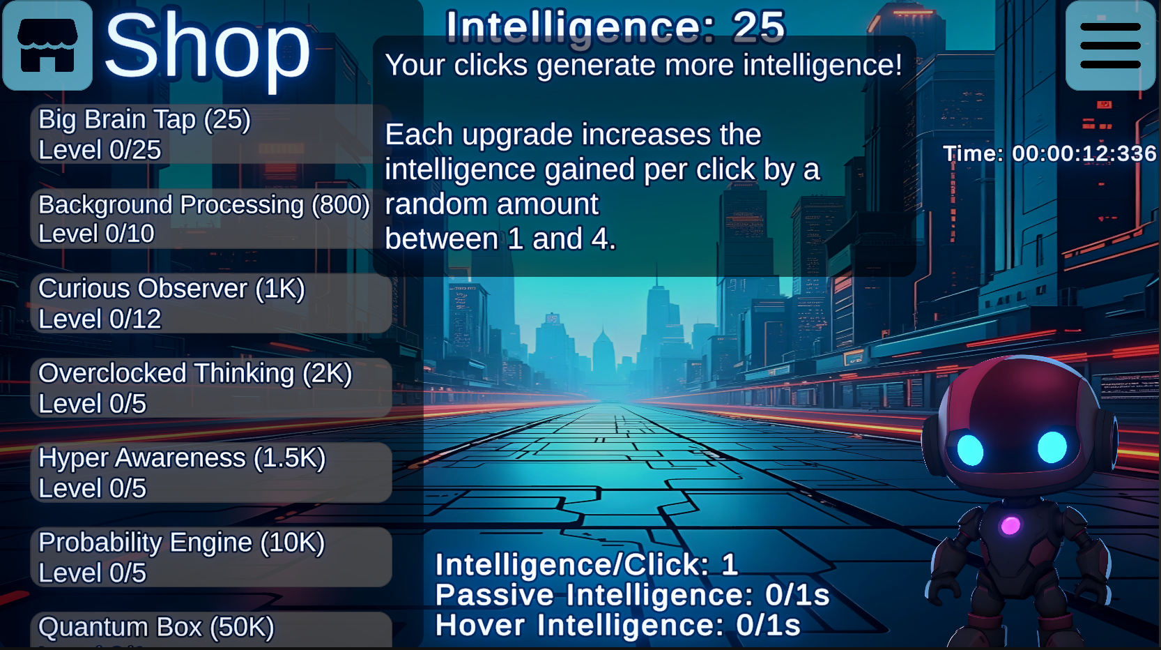- Click to Train AI – Tap on a newly built robotic body to increase its intelligence. Because what could possibly go wrong?